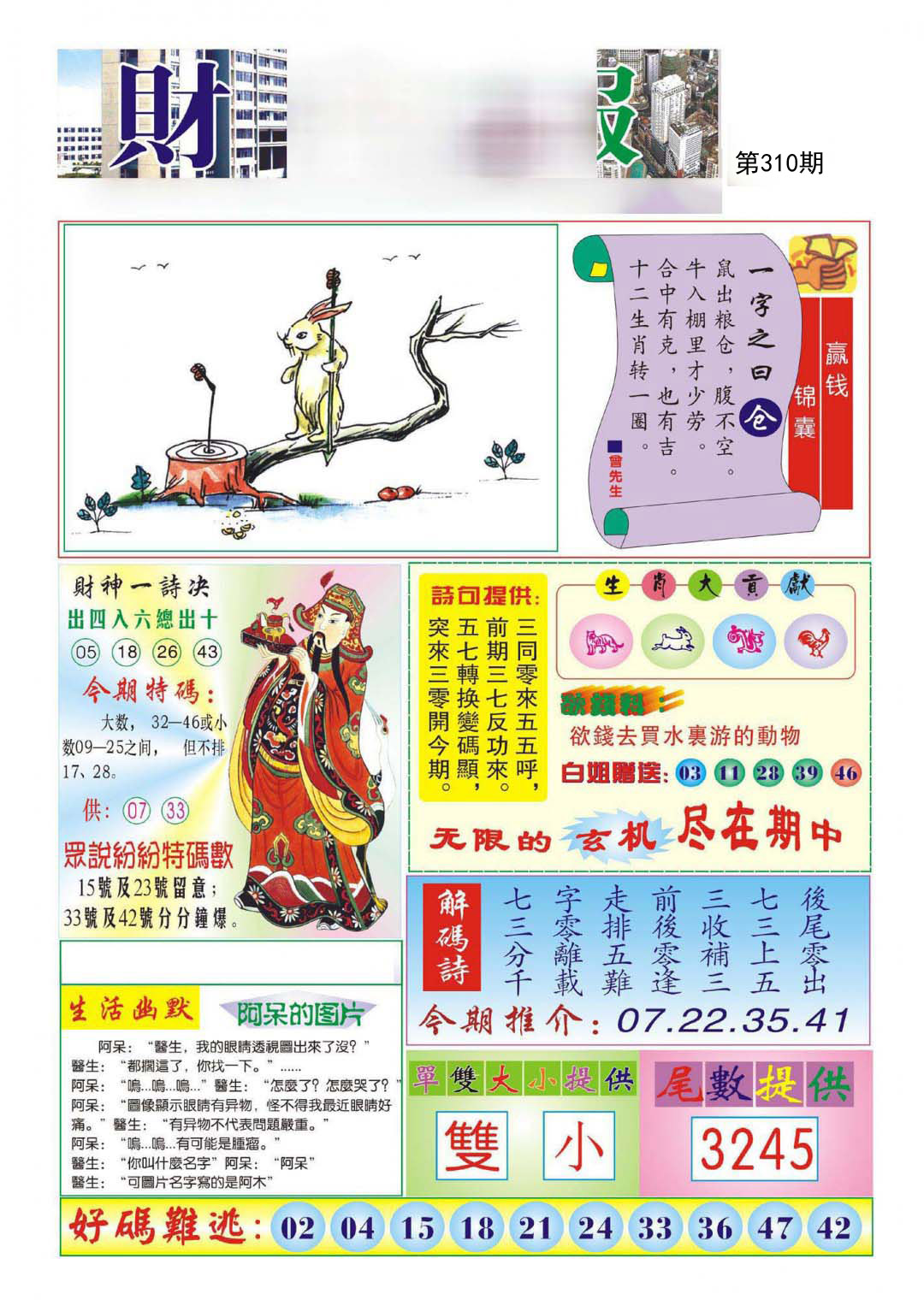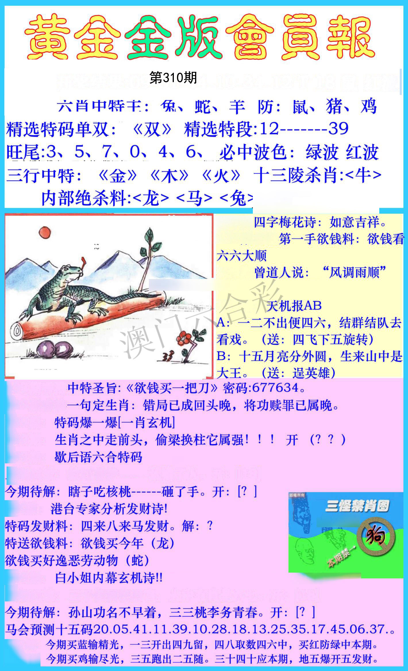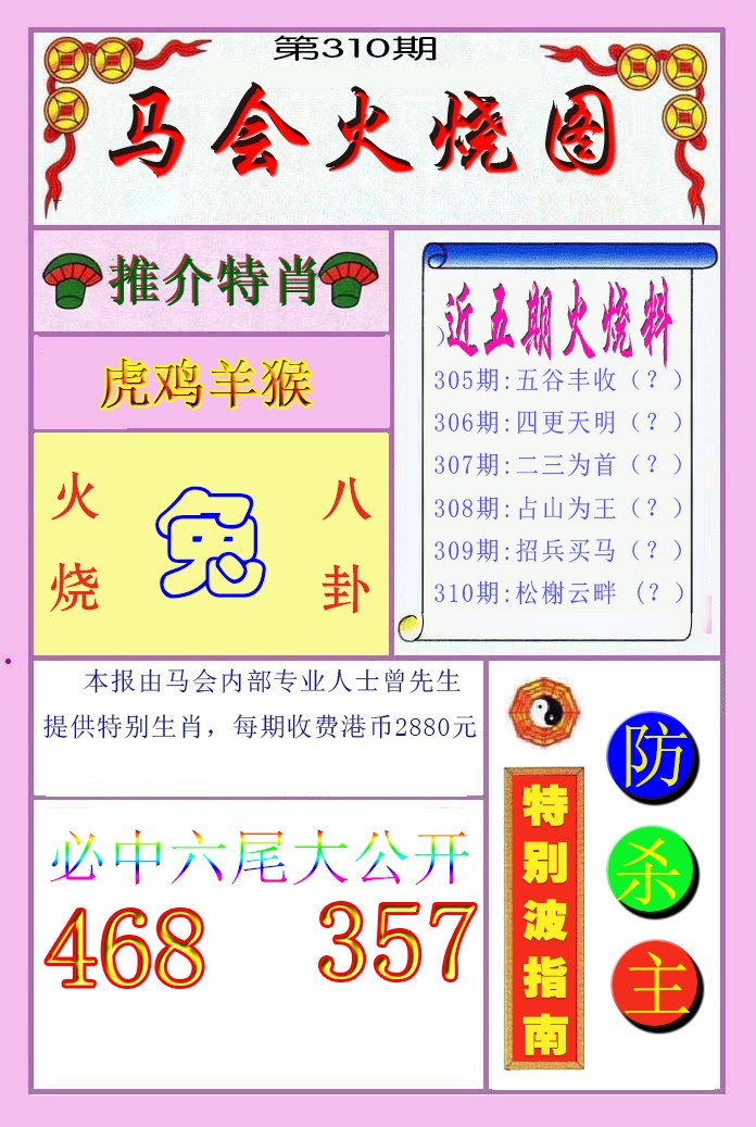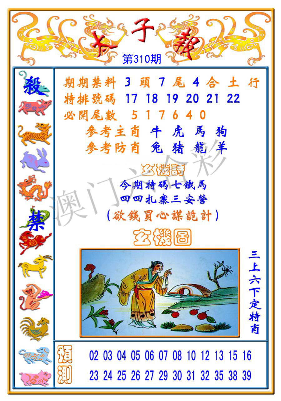 | 310期:必中五肖: 蛇兔狗猪羊 |