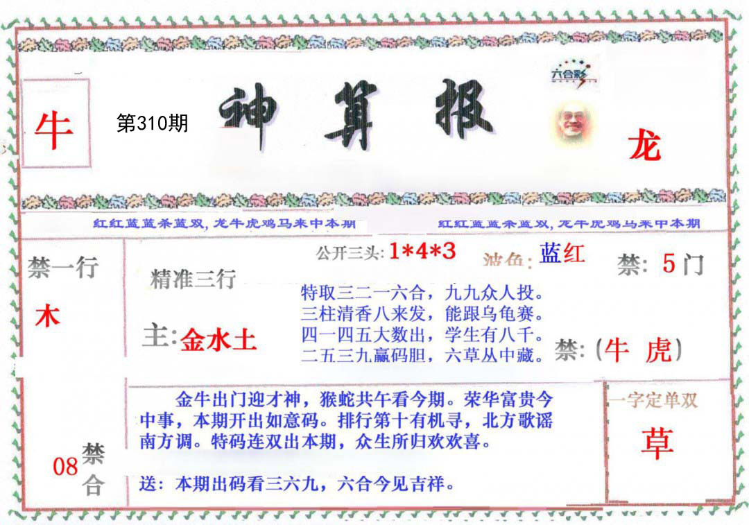 | 308期:必中五肖: 兔羊牛猴蛇 |