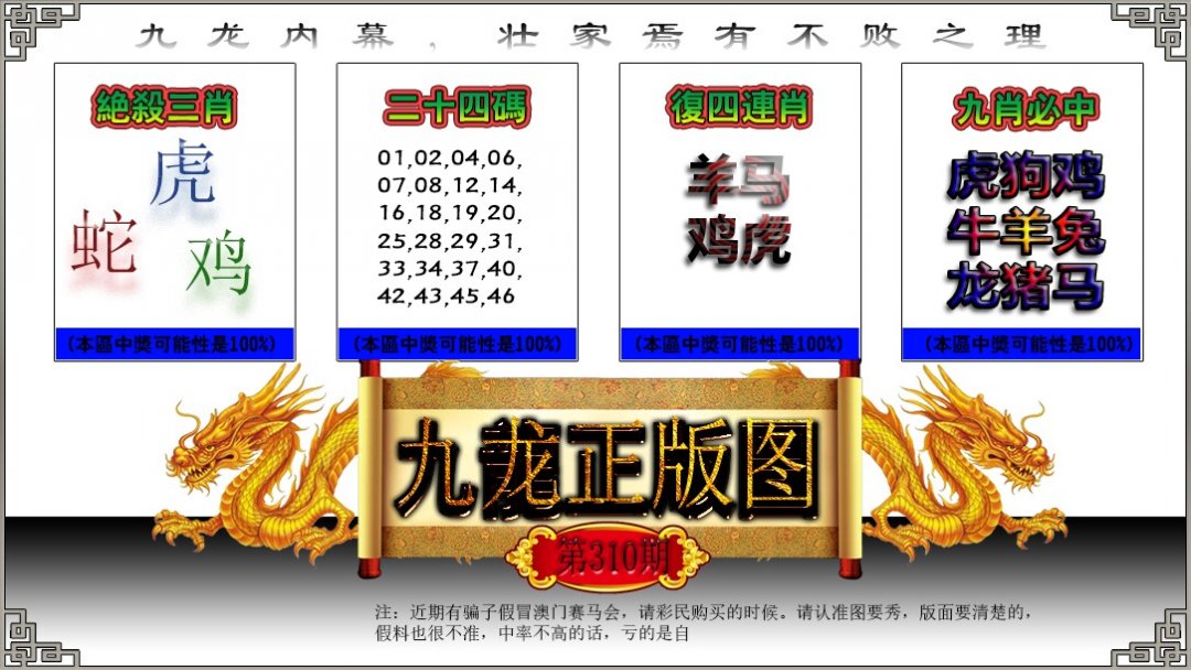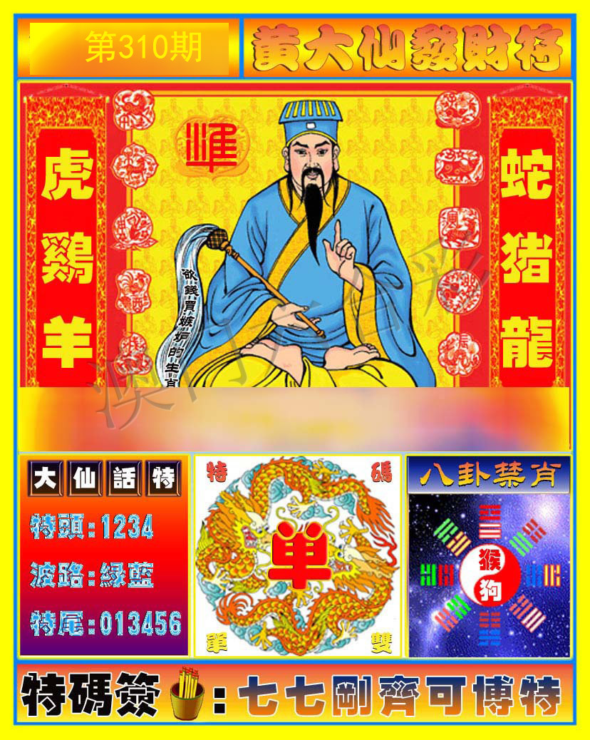 | 310期:必中七肖: 蛇兔狗猪羊虎龙 |